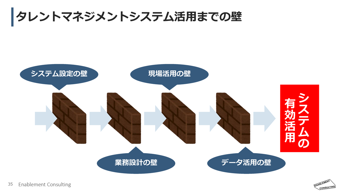 「これら4つの壁を越えてこそ、タレントマネジメントシステムの有効活用が可能となります。それを通して戦略人事を実現していただきたいです」