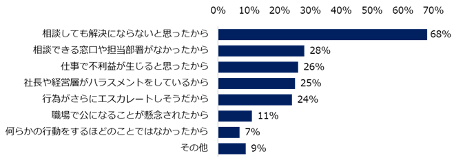 「誰にも相談していない」と回答した人に理由を聞くと、「相談しても解決にならないと思ったから」が68%で最多となっている。