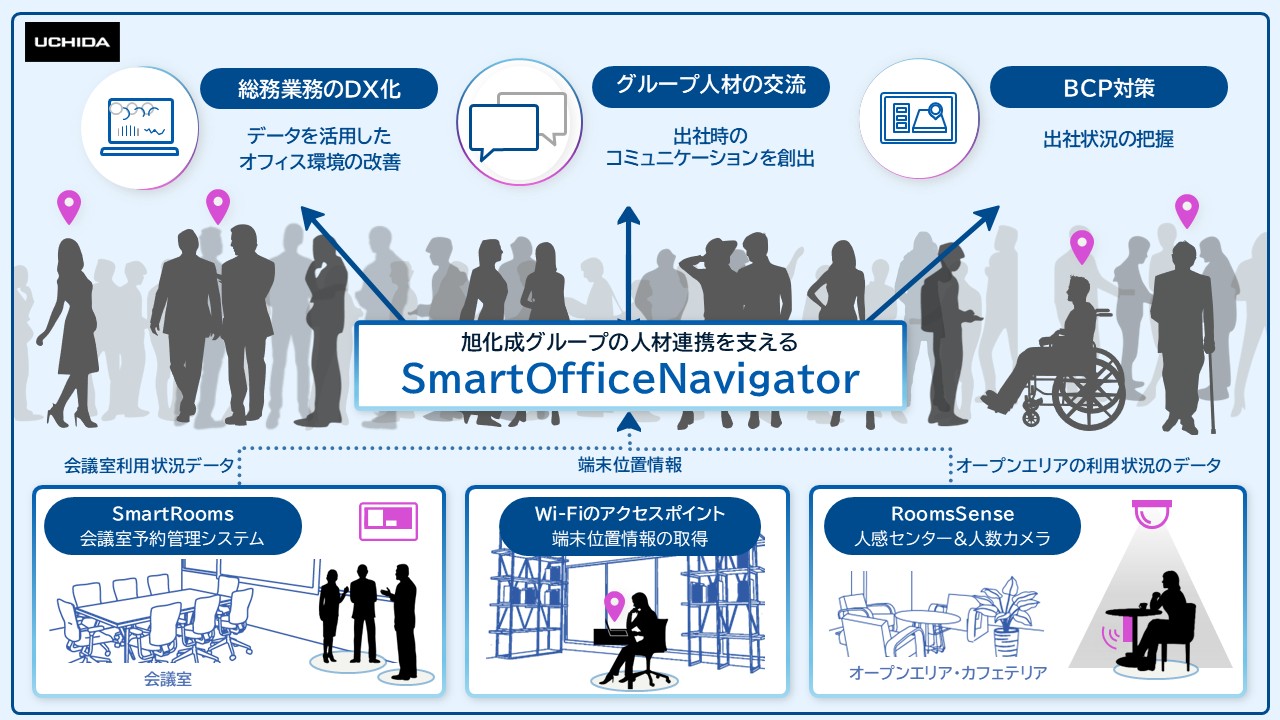 内田洋行は、人と場をつなぐシステム「SmartOfficeNavigator」を旭化成に提供したと発表した。この取り組みは、旭化成グループの本社で勤務する十数社の従業員、約3000名の円滑なコミュニケーション促進を目的としている。