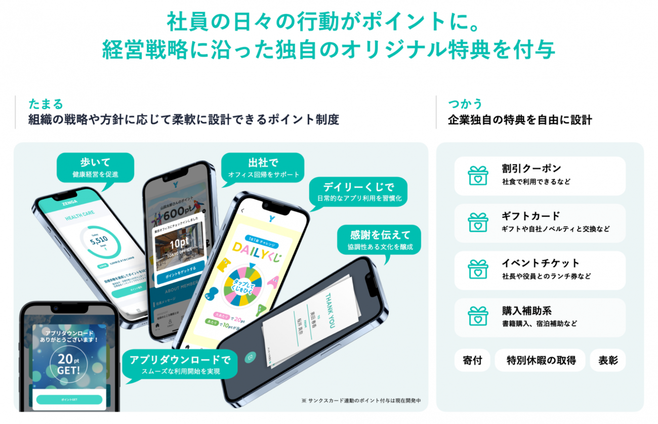 「出社やサンクスカードなど、社員の前向きな行動に応じてポイントを付与する機能を用意している。貯まったポイントは、さまざまなベネフィットや福利厚生への利用につなげられる。社内ポイ活はアプリ活性化のエンジンとして非常におすすめだ」(古屋氏)