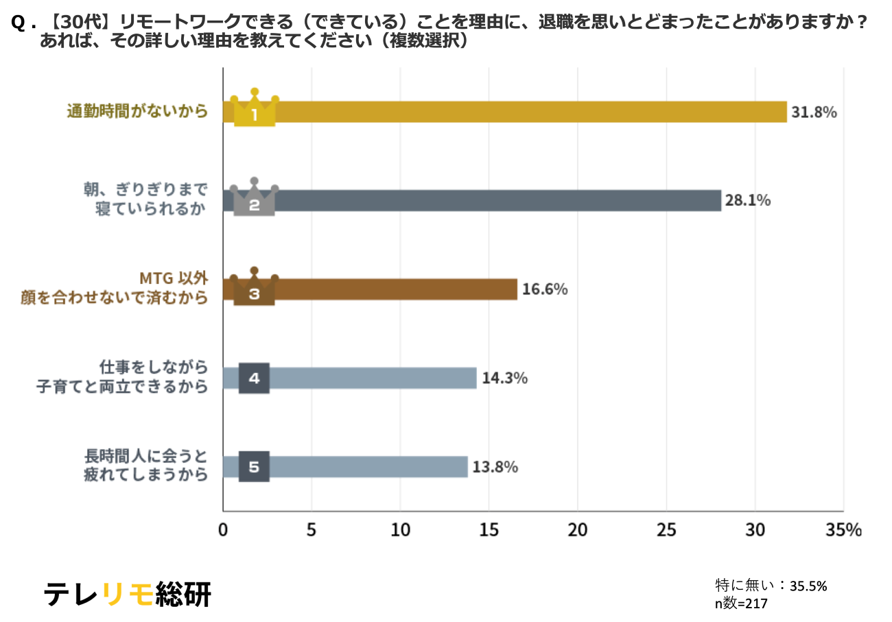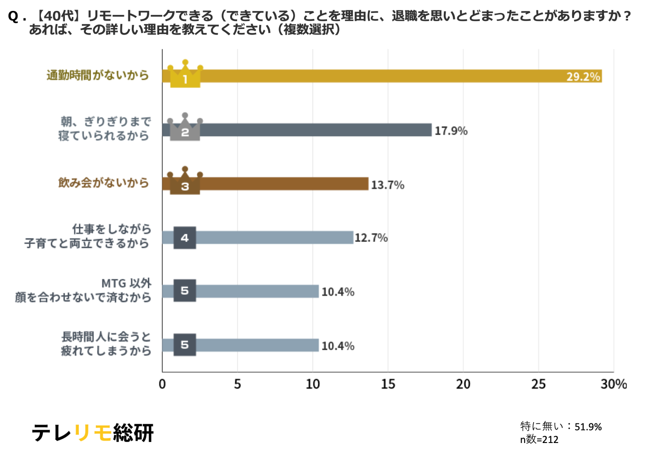 約半数が、リモートワークだからこそ「退職を思いとどまったことがある」
