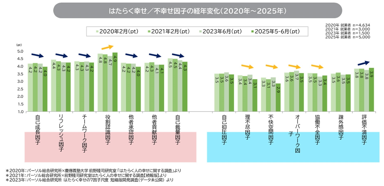 働く幸せ/不幸せ因子の経年変化(2020~2025年)
