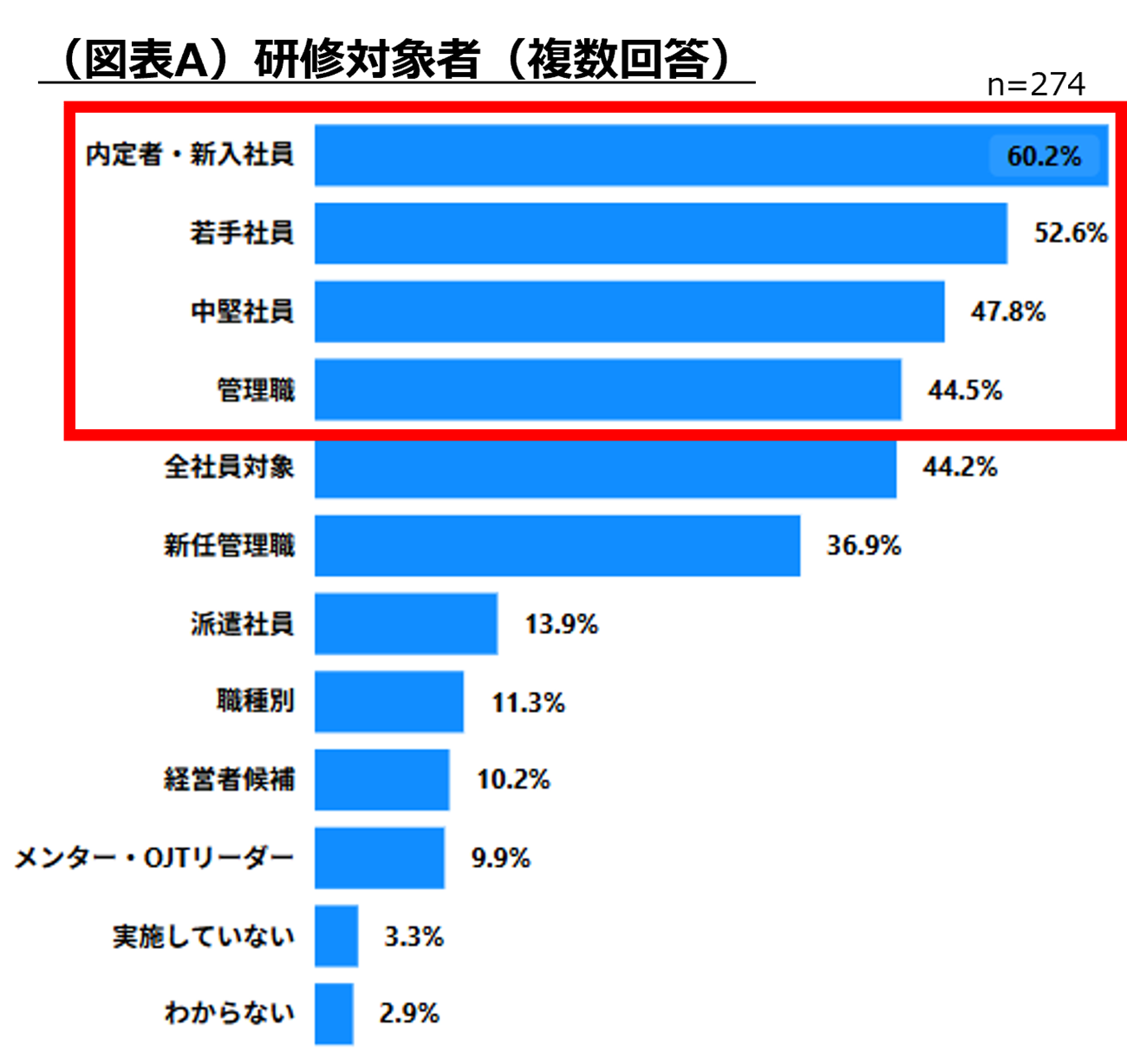 階層別研修が主流、中心層は内定者・若手・中堅社員