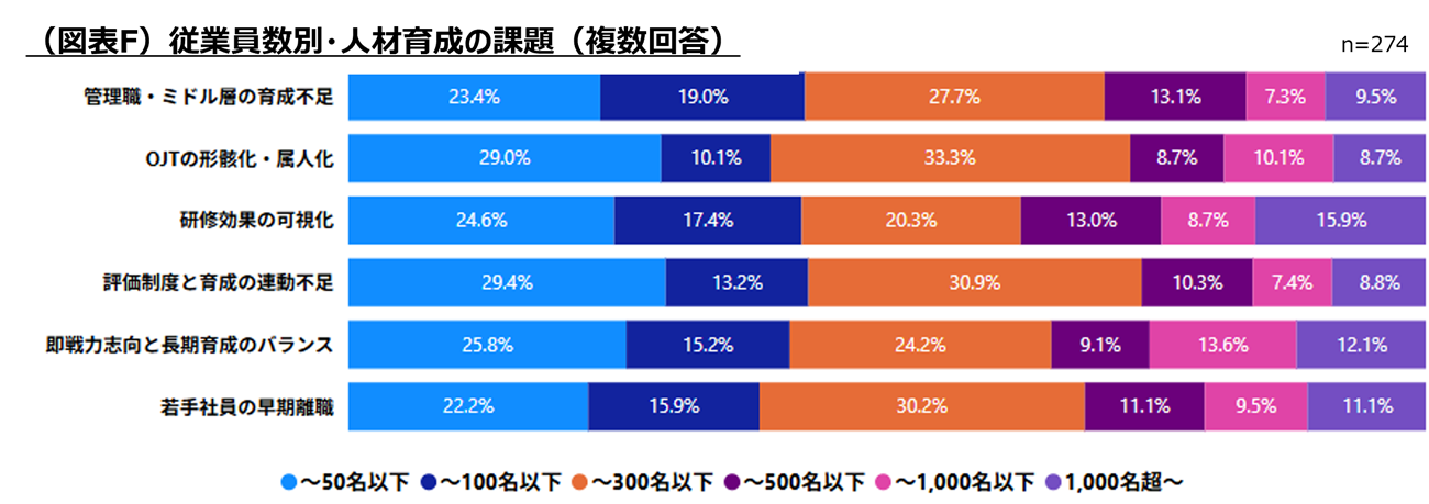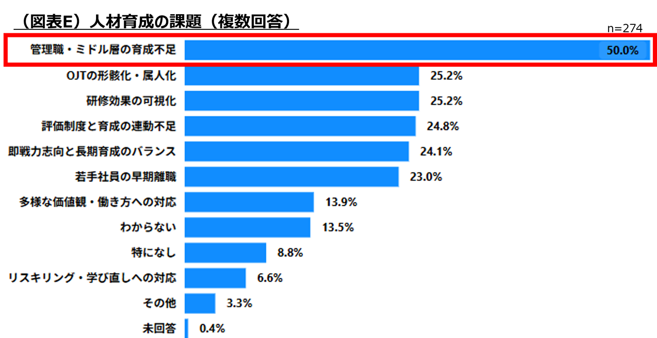 管理職・ミドル層の育成不足が半数の企業で課題に