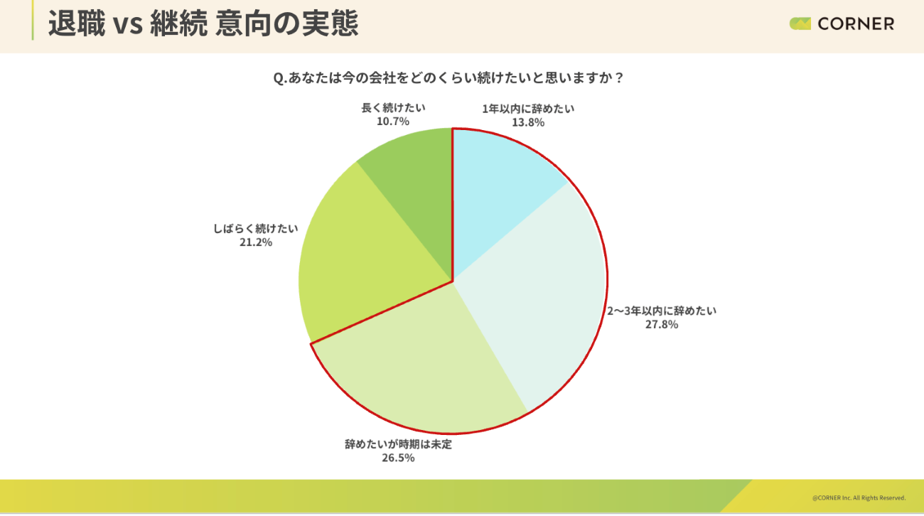 コーナーは、入社1〜3年目のZ世代(退職予定が決まっている人を除く)を対象に、「継続・退職意向」に関する調査を実施した。