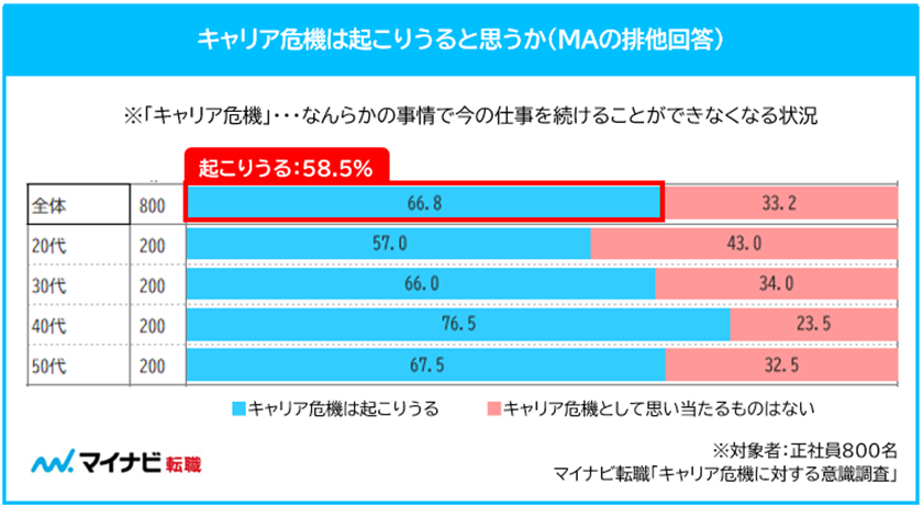 今の仕事を続けられなくなる「キャリア危機」が起こりうると考える人は66.8%