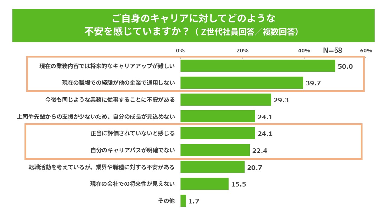 今の会社で働き続けるにあたり、キャリアの不安を抱えるZ世代社員は半数以上