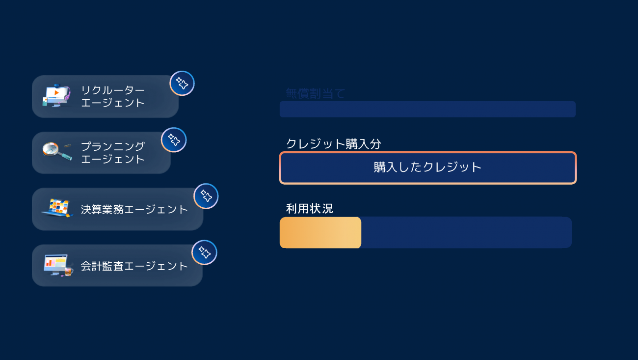 クレジットが残っている限りは、新しい購買プロセスを経由することなくAIエージェントを導入でき、クレジットがなくなれば追加で購入もできる。これによって、企業は、任意のタイミングで使いたいAIエージェントをフレキシブルに導入できるようになる。
