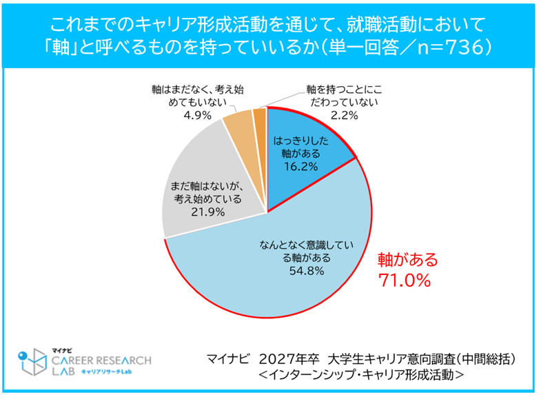 キャリア形成活動を通じた、就職活動における「軸」がある学生は71.0%