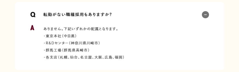 当社では採用説明会や面接の段階から、「全国転勤があります」「ジョブローテーション制度があります」ということを明確に伝えています。入社後に想定外の異動があるとギャップを感じてしまうので、事前にしっかり理解してもらうことを重視しています。