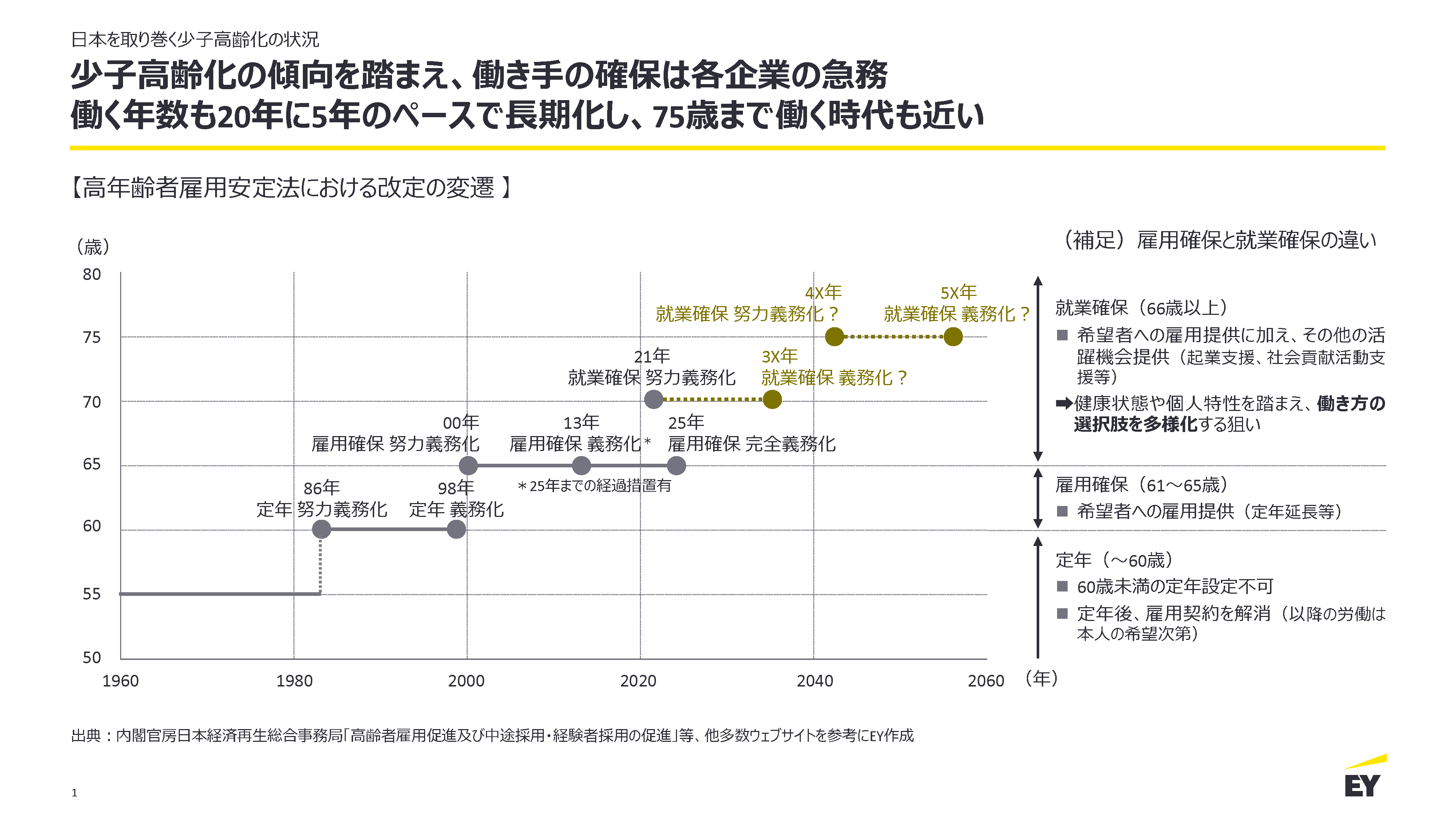 [1]: 総務省統計局『人口推計』、国立社会保障・人口問題研究所『人口統計資料集』、国際連合『World Population Prospects』を参考にEYにて作成。