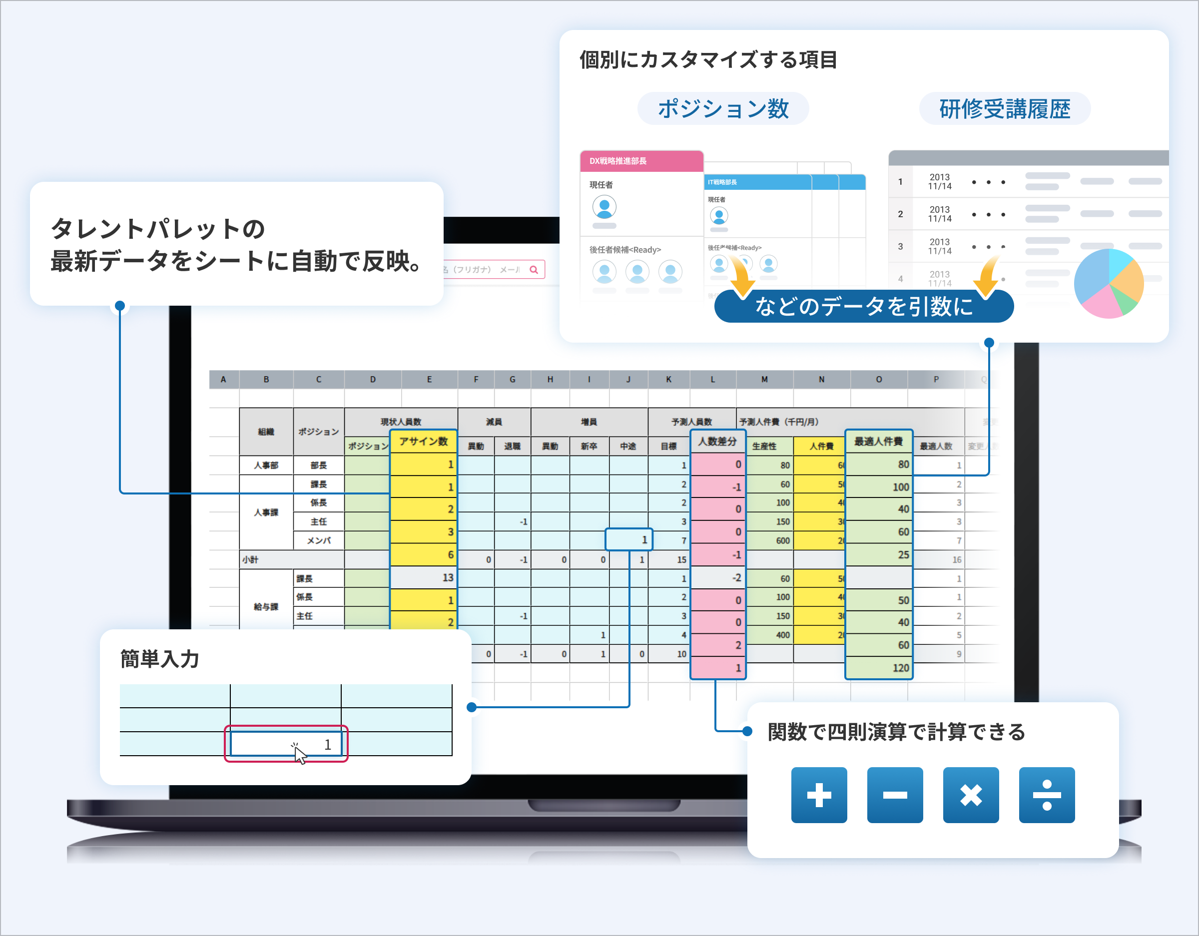 今回の新機能により、企業独自のレイアウトや集計項目に柔軟に対応した要員計画表をタレントパレット上で作成できるようになった。人事データと分析機能を組み合わせ、従来は手間と時間がかかっていた要員計画の作成作業にかかる工数を大幅に削減する。同時に、データ活用による戦略的な意思決定の高度化も可能となる。