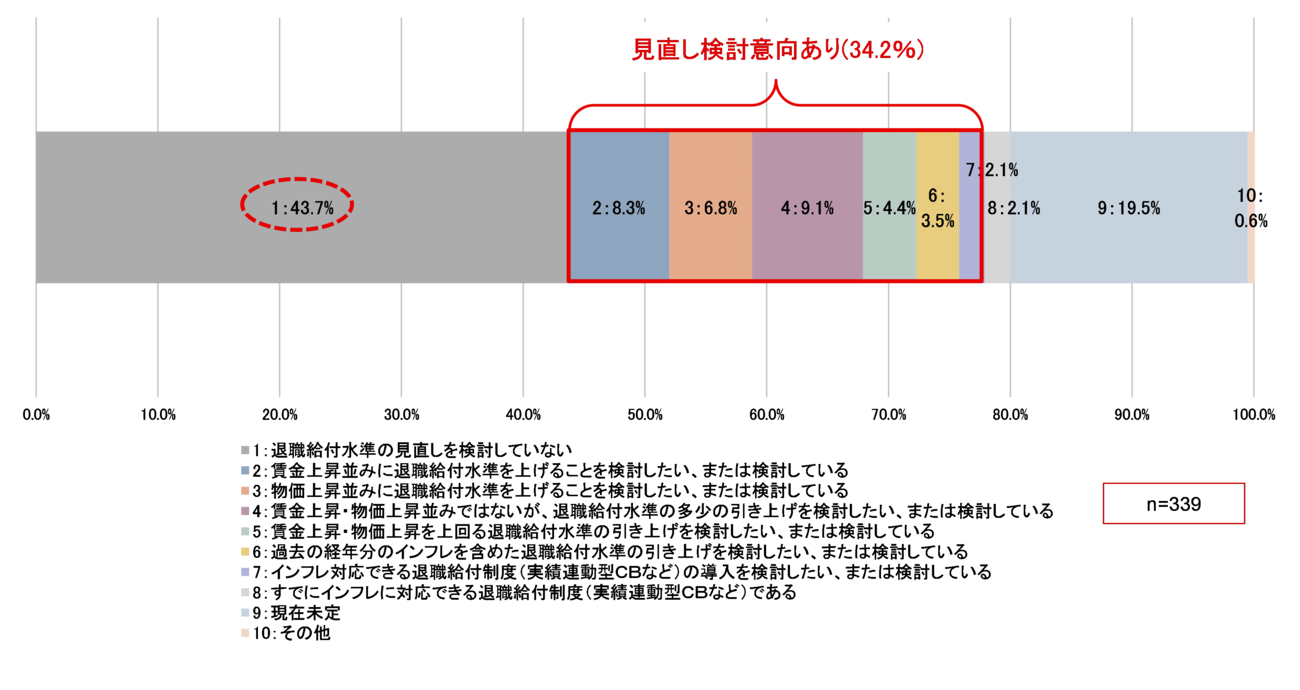 - 「退職給付水準の見直しを検討していない」が43.7%