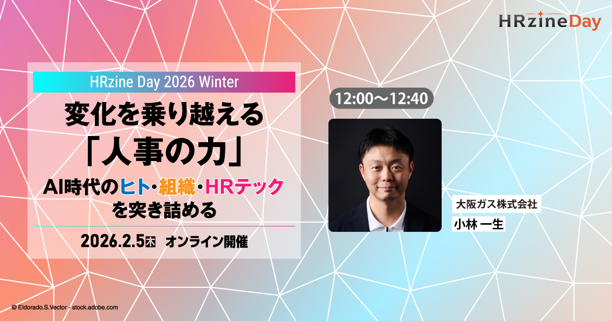 2026年2月5日(木)に開催されるオンラインイベント「HRzine Day 2026 Winter」。本イベントの基調講演(Aトラック)に、大阪ガスの人事部 人材開発チーム マネジャー 小林一生氏が登壇する。