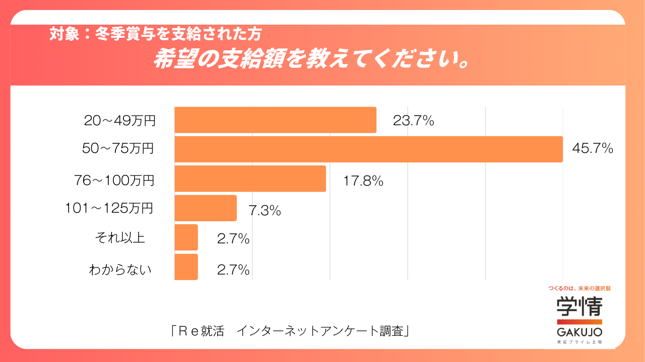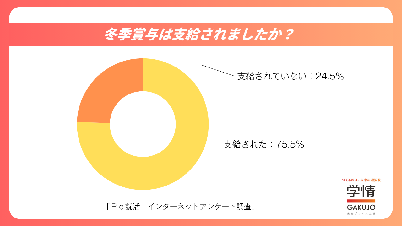 学情は、同社のRe就活を利用している求職者を対象に、「冬季賞与」に関するインターネットアンケートを実施した。その結果について、以下のように伝えている。