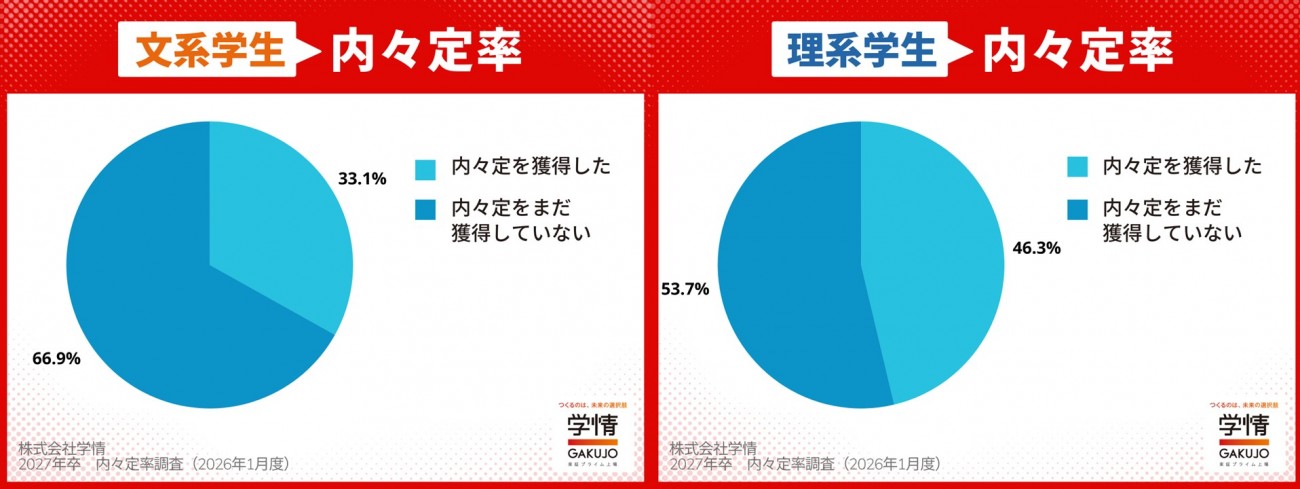 学情は、2027年3月卒業(修了)予定の大学生・大学院生を対象に、最新の「内々定の獲得状況」についてインターネットアンケートを実施した。
