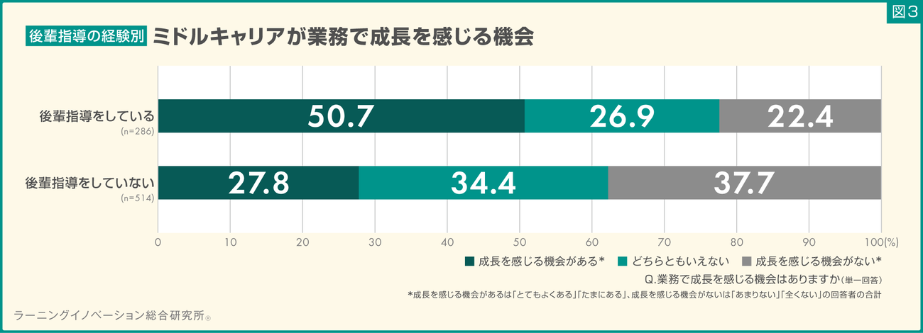 後輩指導をしているミドルキャリアのほうが、成長を感じる機会がある傾向が見られた。