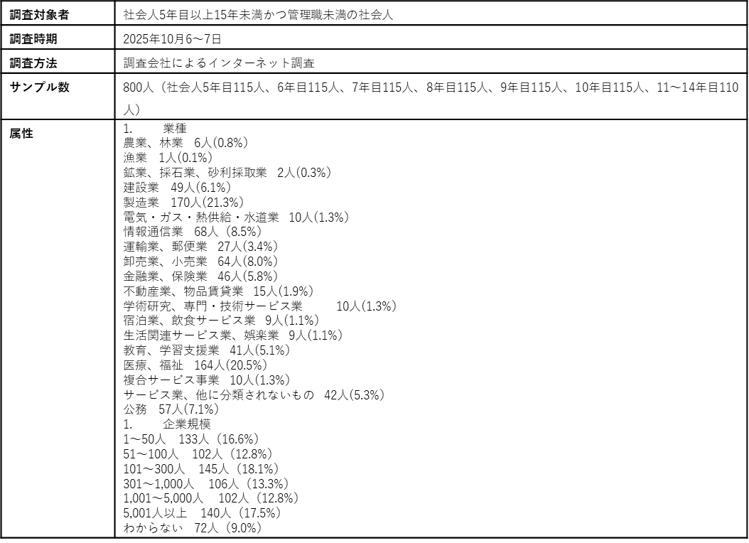 なおこの調査では、社会人5年目以上15年未満、役職に就いていない社員を中堅社員とし、以下「ミドルキャリア」と記載する。