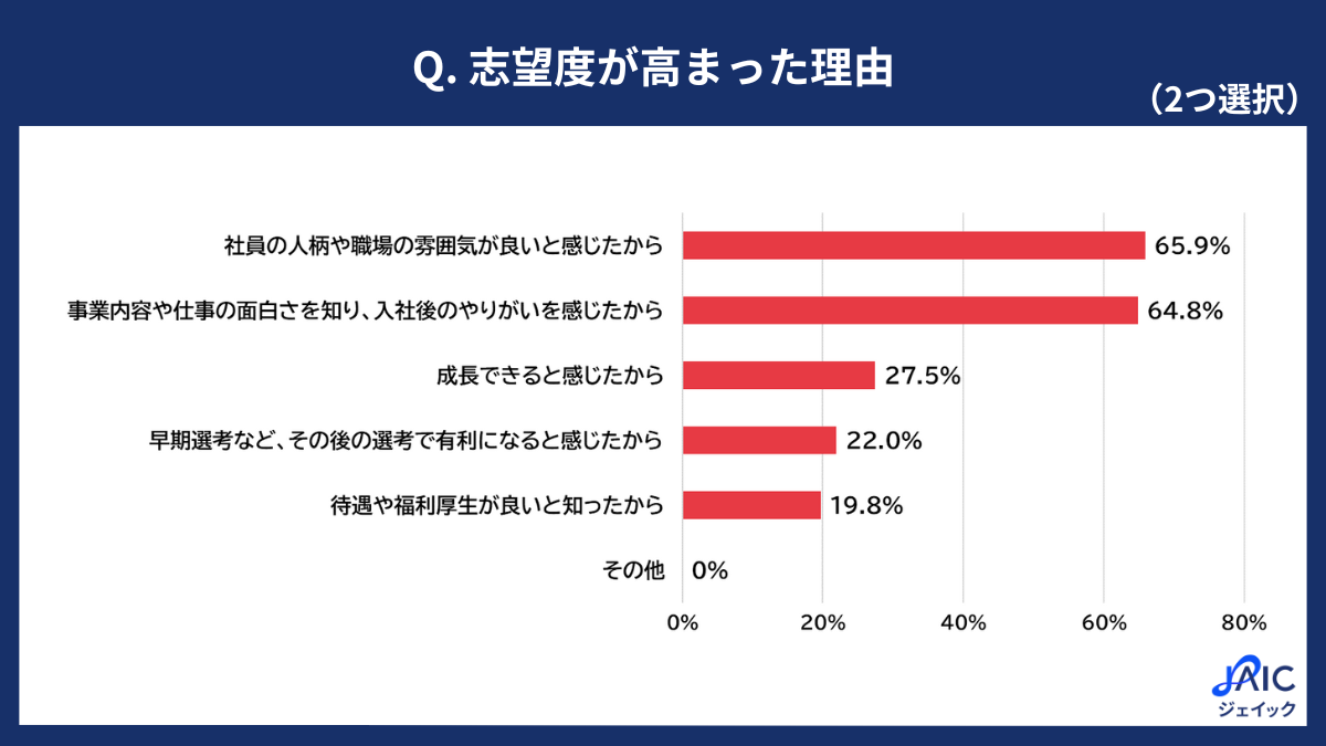 志望度が高まった理由1位は「社員の人柄・雰囲気」
