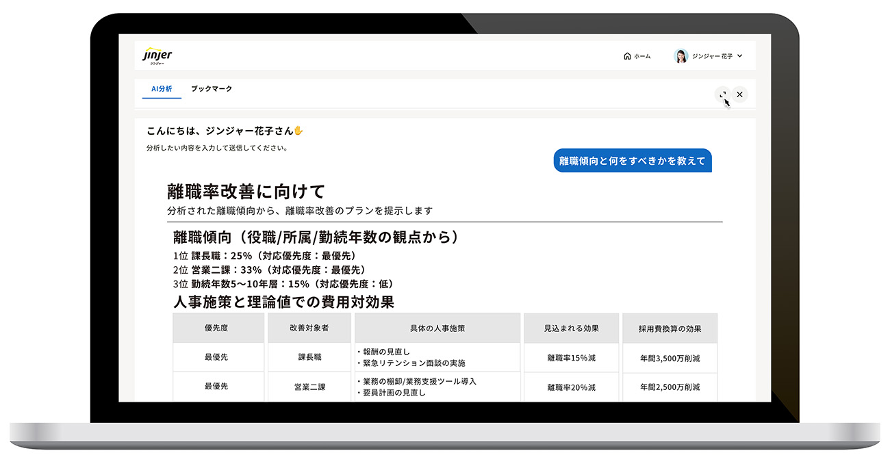 jinjerは、同社が提供する「ジンジャー人事データ分析」において、統合型人事システム「ジンジャー」内に格納された人事データをAIが解析し、打つべき施策を提案するAI機能を実装したと発表した。